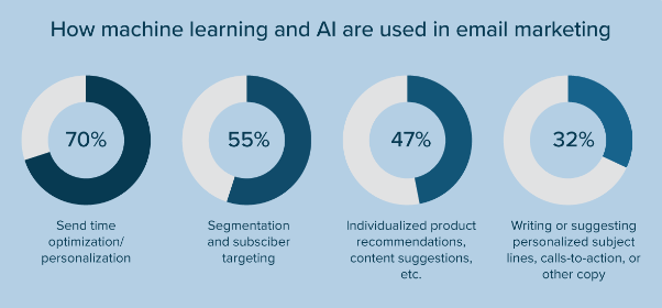 AI-powered tools can analyze which types of subject lines, images, and calls-to-action perform best with your audience. Then they recommend or generate content based on these insights.