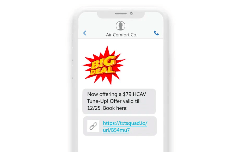 One of the most powerful aspects of SMS marketing is its ability to deliver promotional offers directly to customers. For HVAC companies, offering limited-time discounts, seasonal deals, or exclusive promotions is an effective way to drive sales. However, these offers can get lost in the clutter of email inboxes or ignored on social media. With mobile marketing, your message is sent straight to the customer's phone, where it's much more likely to be seen and acted upon.