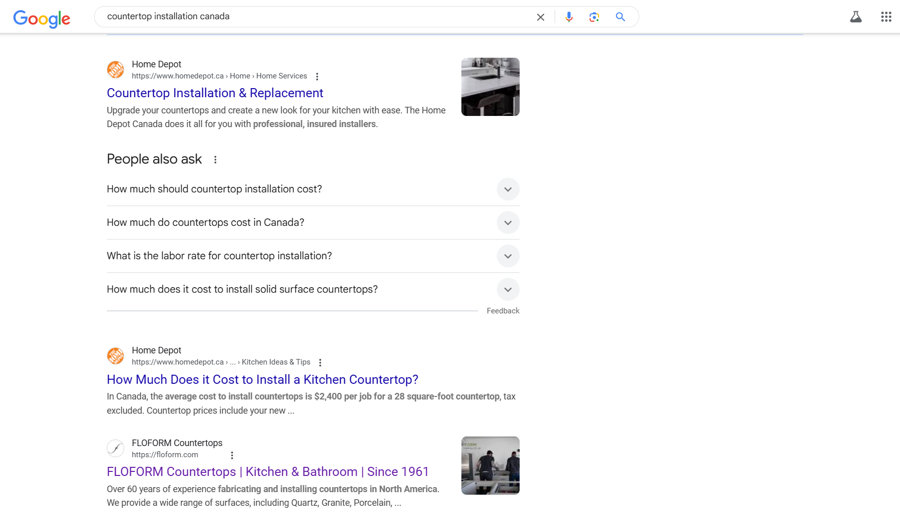- Embed Local Keywords: Don’t try ranking for keywords like “granite countertops Canada.” Instead, be more specific and aim for terms like “granite countertops in Ontario.”