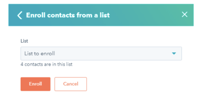 - If you want to enroll multiple contacts manually, an option is still provided by HubSpot.