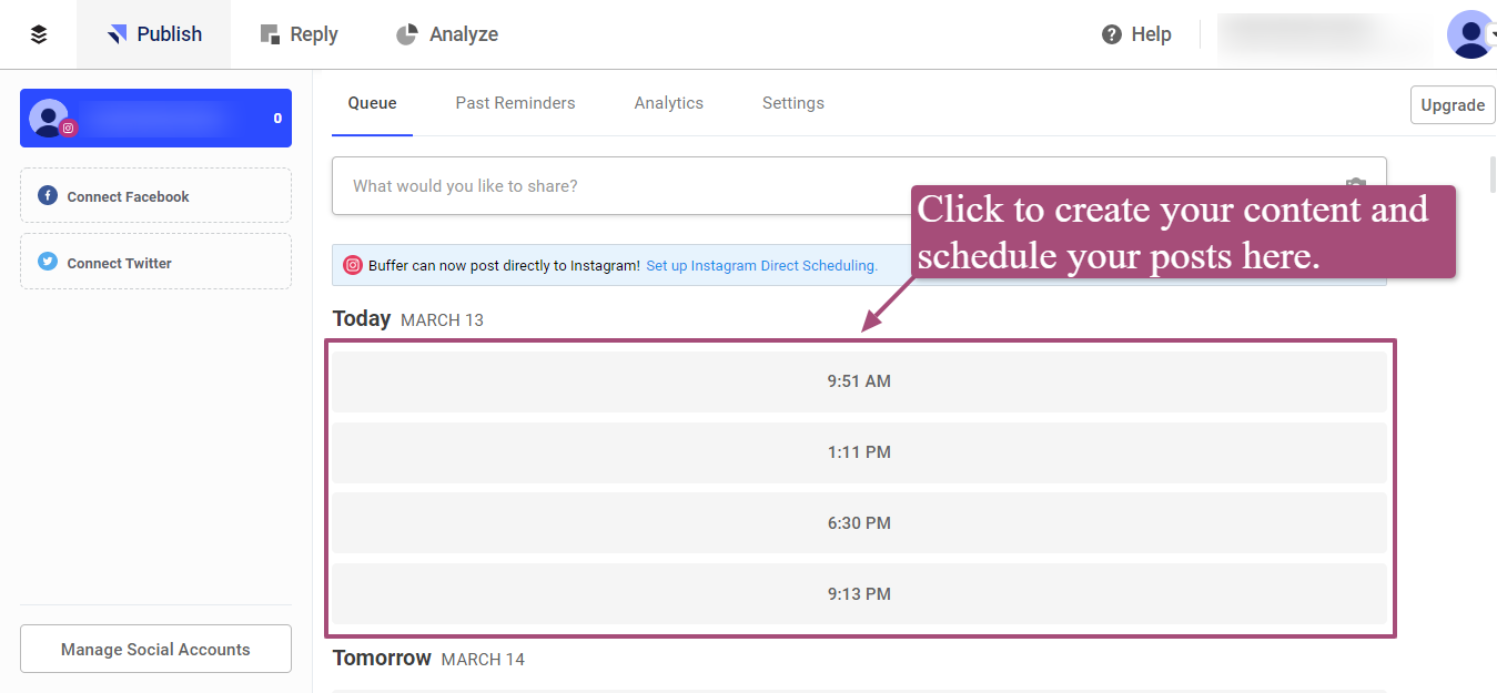 After all, if you can’t, let’s say, post regularly on Instagram or Facebook, your brand could get drowned out in the sea of other businesses in your industry. To keep this from happening, you can use Buffer to stay on top of your social media management activities.