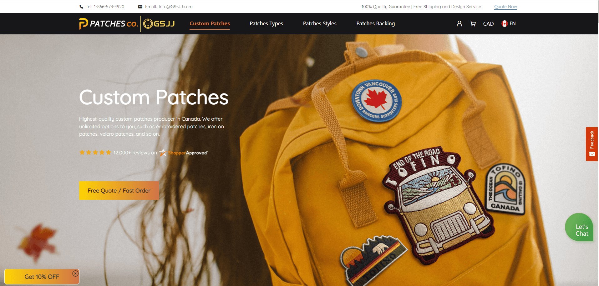- From the color tone, and font to the overall style of the website, it is highly consistent with the custom patches brand image, showing a strong brand recognition.