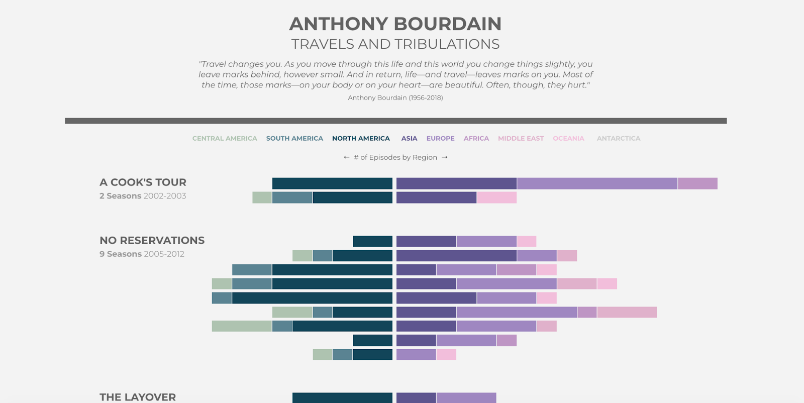 Anthony Bourdain number of episodes by region