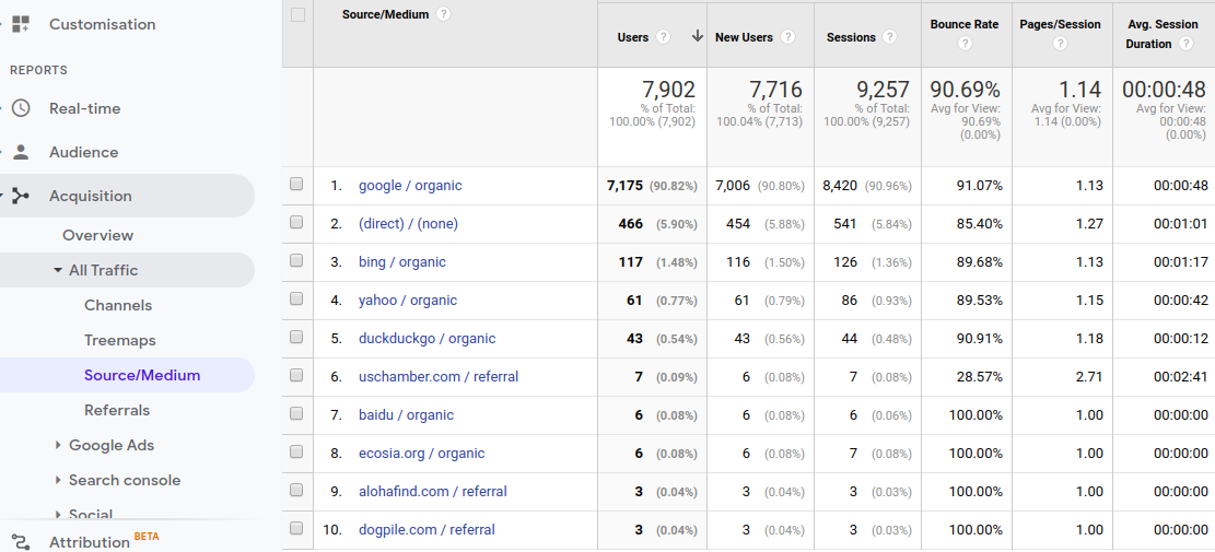 For a more detailed breakdown, proceed to the Source/Medium section. There you’ll see how many users each source drives to your site.