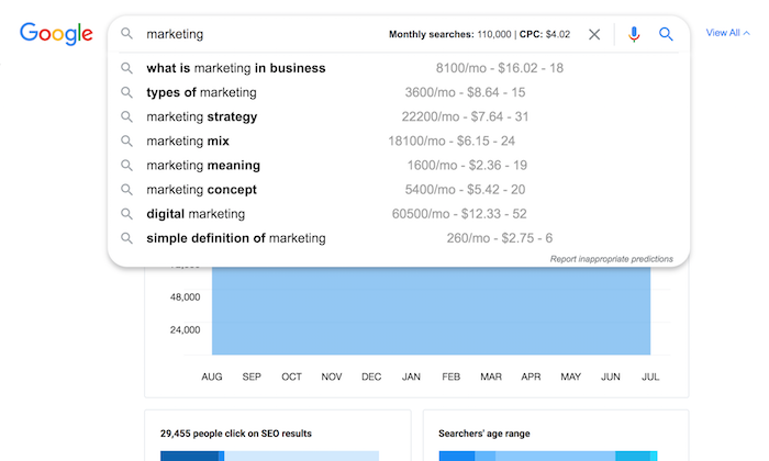 2. Do keyword research and collect all the keywords related to your business, products, or services. Create a list of potential keywords and analyze them. Start with the search engine (Google Autocomplete, for example). I need to enter the keywords into the search bar and see what pops up. There are many browser extensions like Ubersuggest and Keywords Everywhere that allow you to analyze the particular keyword by not leaving the search results.