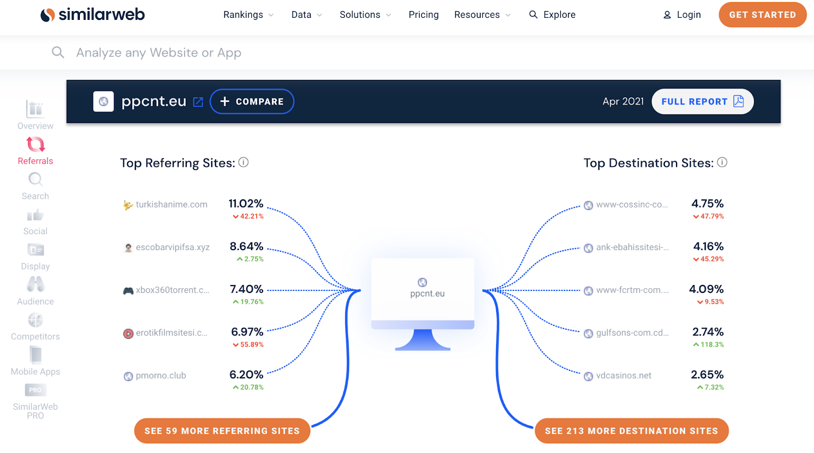 Use SimilarWeb to look at the main referral sites of competitors by the number of traffic. You’ll see only five top referring sites in a free version, so you will need to do additional competitor research here to gain more data.