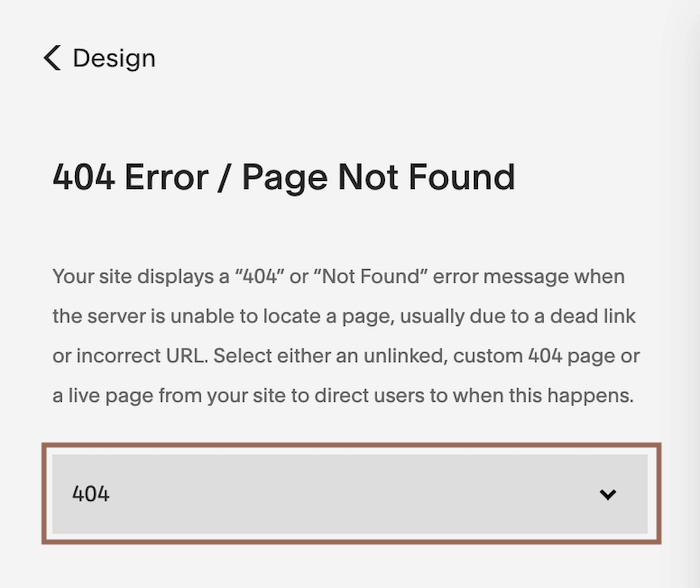 - Customize the 404 pages if there are no other options. At Squarespace, choose Design - NotFound/404 Page and select your custom page. Check on the ideas on how to make the most of the 404 Error Page.