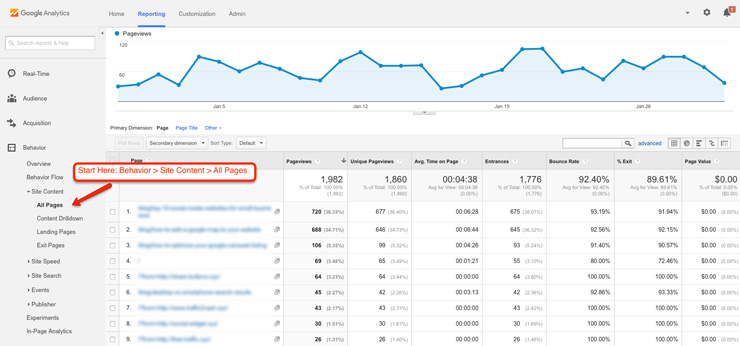 In this case, you'll need to focus on the % Exit column. Have a look at pages with the highest %. Then check them and try to understand why people leave them. Here are a few reasons why they can leave your web page.