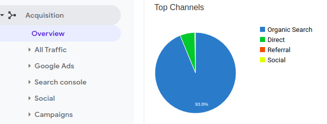 Click on the Overview section. It will show you your top traffic channels and the amount of traffic they drive to your site.
