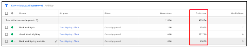 For instance, if you spent $100 on a campaign and generated 4 sales, your cost per conversion would be $25.