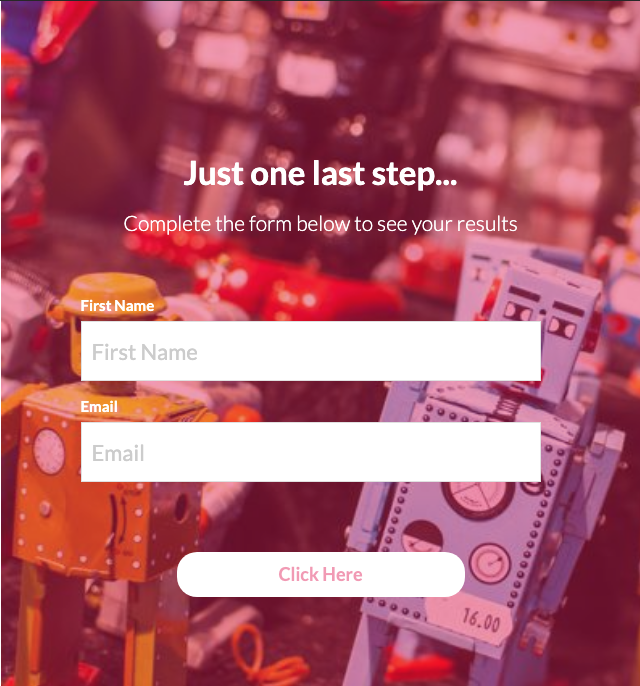 The best place for your data capture form is after the questions and before the outcome. Nobody likes gated content, but we’re happy to make a trade-off when it comes to providing your information for something in return.
