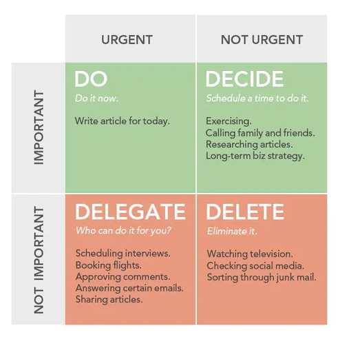 Tasks that fall into the quadrant of being both urgent and important demand your immediate attention. These are the high-priority tasks that directly impact your projects, deadlines, or client commitments. Prioritize these tasks and tackle them promptly. The Eisenhower Box helps you avoid procrastination and ensures that you're addressing critical matters head-on.