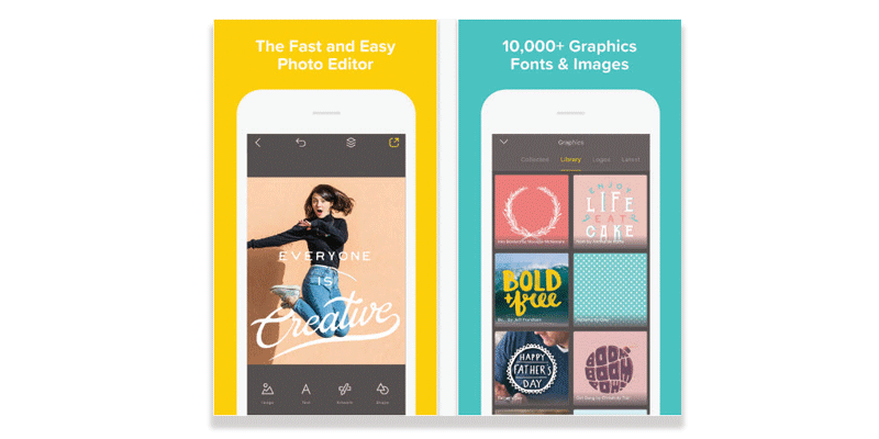 Over is a designer’s dream. With options to create graphics using templates or from scratch, the app provides access to royalty-free photos, colours, fonts, vectors, and more. The app also provides an option to schedule posts to Facebook, Instagram, Snapchat, and more to simplify the process of growing your business or personal brand.