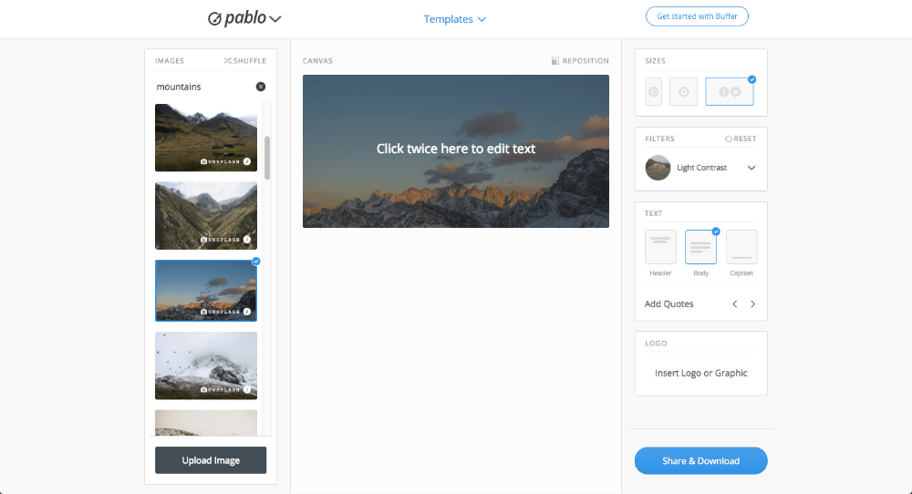Maintaining an active social media feed can be difficult. That’s why the team at Buffer social media management created Pablo, a free tool to create eye-catching social media posts. Users have the option to create graphics using pre-determined templates or from scratch, choosing from more than 600k photos and editing with filters, text, and logos.