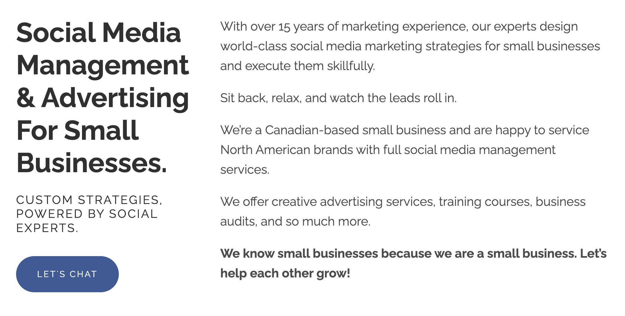 As you can see, the "Let's Chat" call to action button is visible and easy to navigate given its blue background. In this particular case, this button sends users to their contact page which is a great idea.