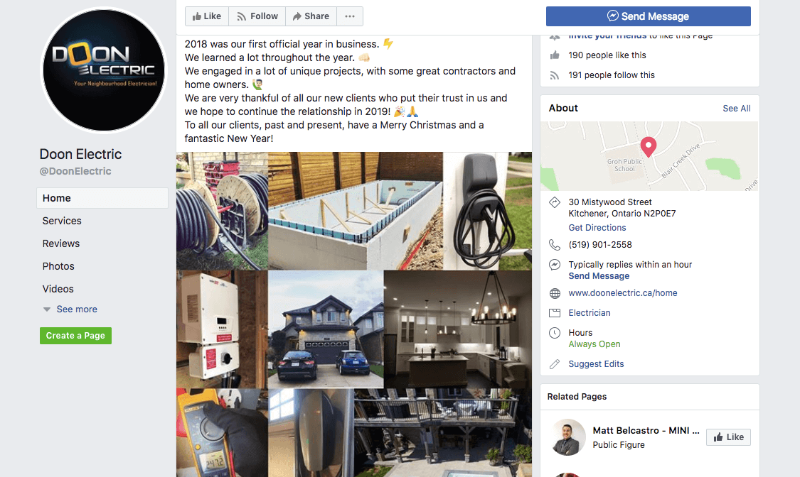 For example, similarly to Walmart, create a Facebook page for your electrical services that includes all of the information that a prospective customer would need to decide to contact you. This may include your business hours, services, as well as images of your work to generate interest.