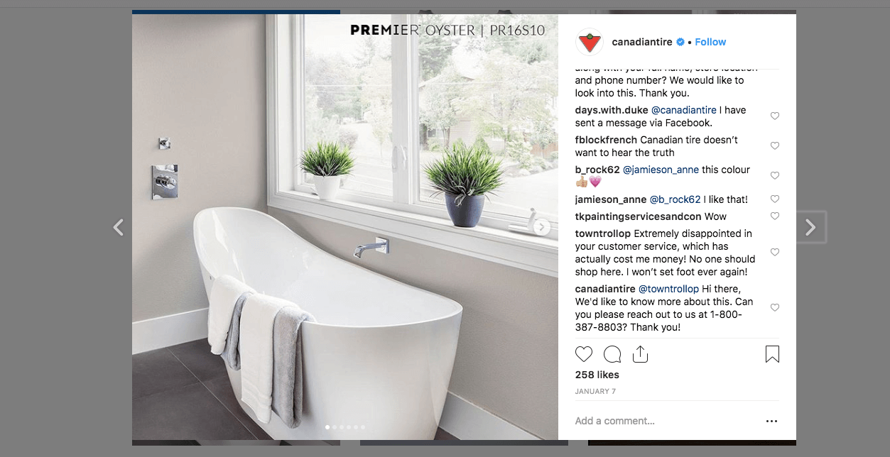 In the same way that Canadian Tire uses Instagram to respond to customer inquiries, your electrical business can respond to comments on images, whether positive or negative, to maintain relationship with your followers.